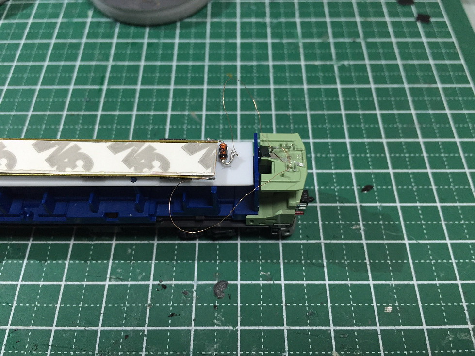 10-1329_711 (12)s最後はチップLEDから伸ばしたエナメル線を少し余裕を持たしてカットし室内灯ユニットに半田付けしました。
