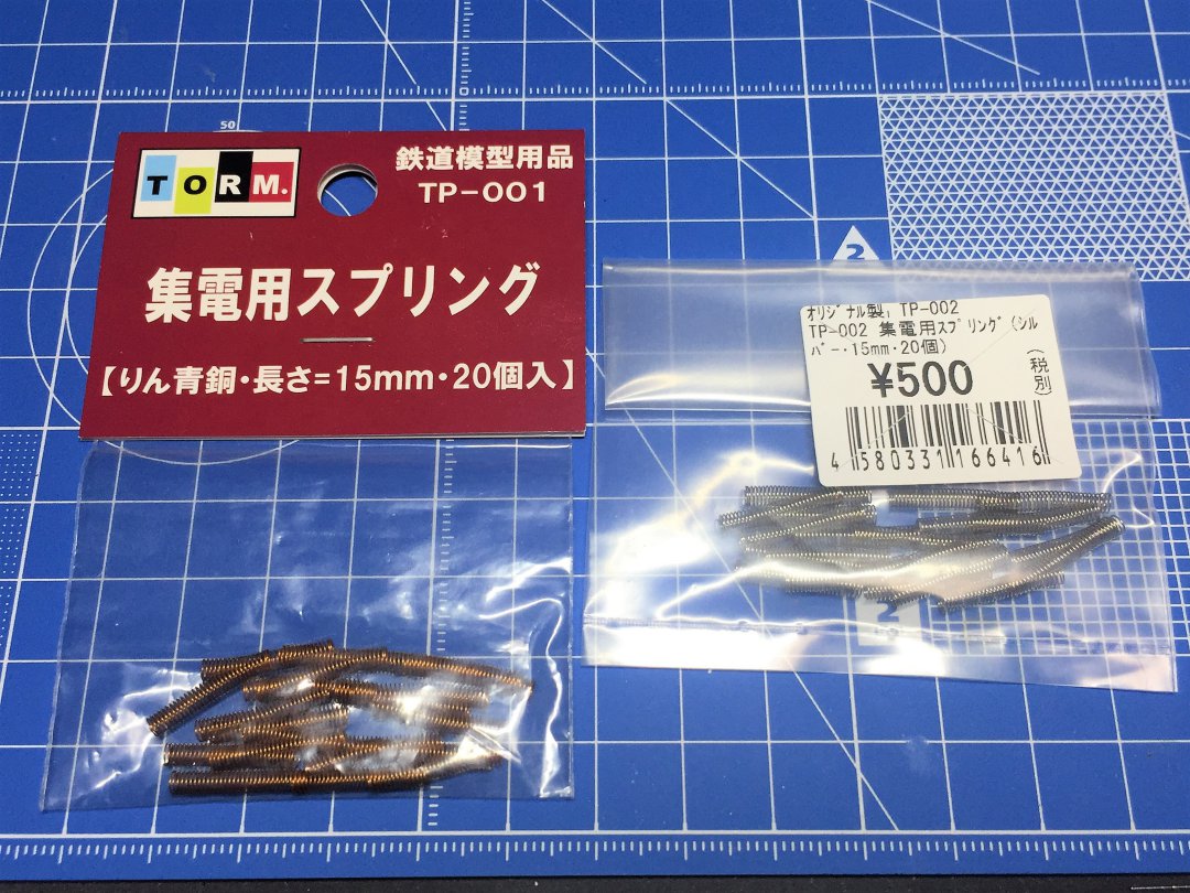 kato 10-1500 35系4000番台 室内灯取付使うのはTORM.の集電用スプリングです。りん青銅のTP-001とTP-002があります。意外と色々なことに使えますので、買えるときに買いだめしてます。
