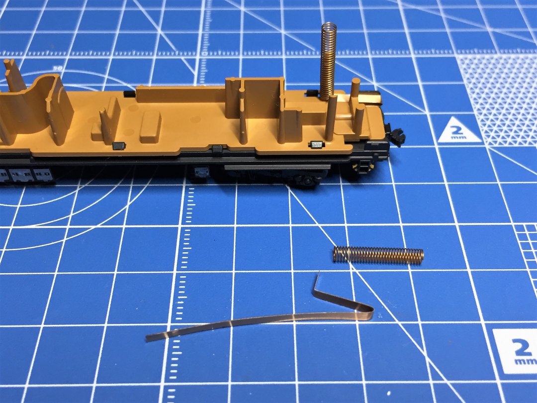 kato 10-1500 35系4000番台 室内灯取付ナハは側面に窓がちょうどありませんので、集電にはスプリングを使ってみます。