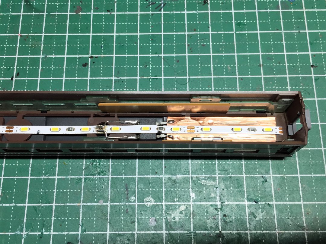 こちらもエクシンテックのスリムテープLEDとブリッジダイオードを使って組み立てていきます。3両目になるともう慣れてきました。