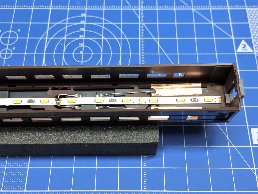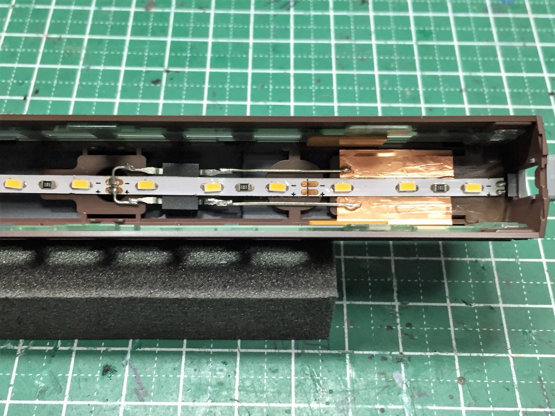 室内灯の作りはナハ35と同じですが、導電性銅箔テープの面積を減らしました。