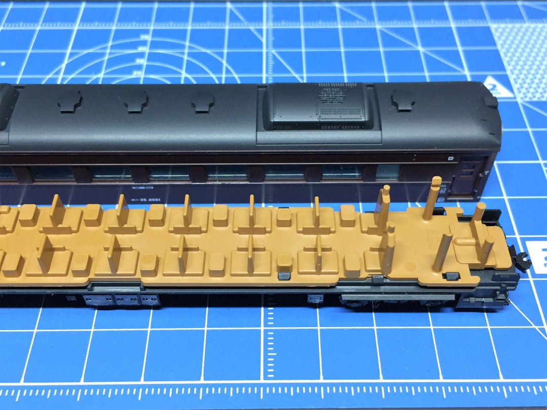 展望車のスハテ35は室内灯を取付けましたので、中間車両のスハ35 4001、オハ35 4001、ナハ35 4011の3両を一気に弄ります