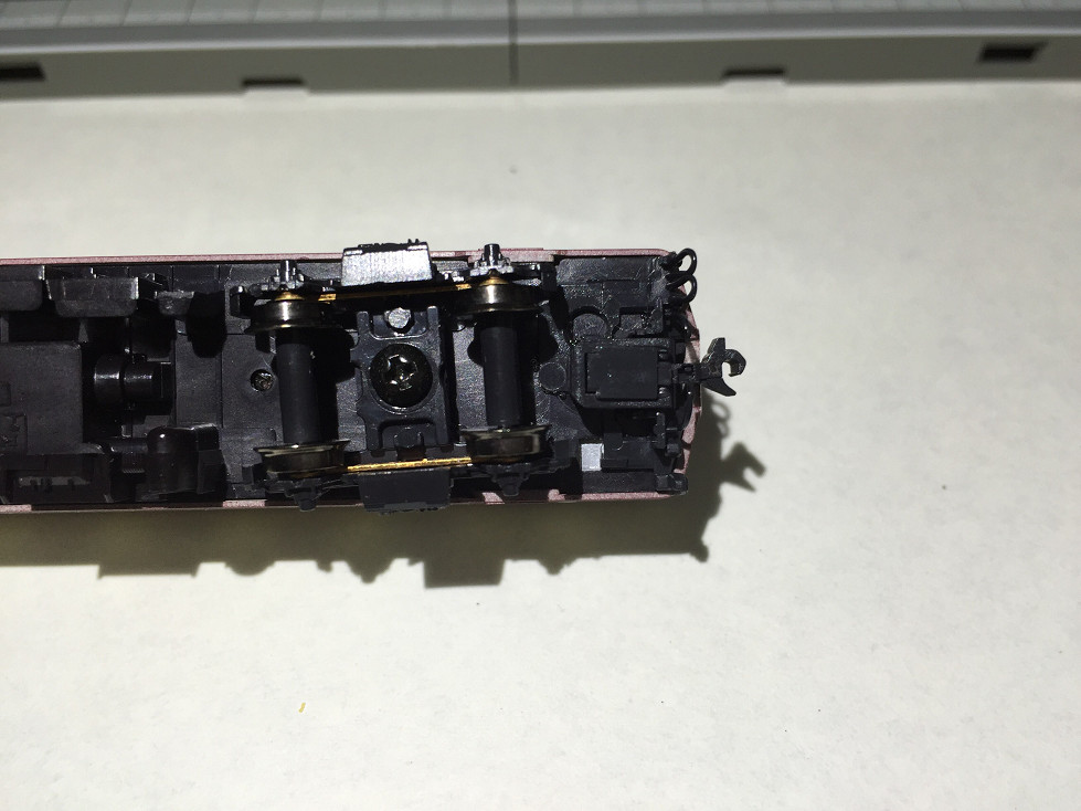 台車から切り落とした、カプラーアダプタ?を画像下のように加工しました。
