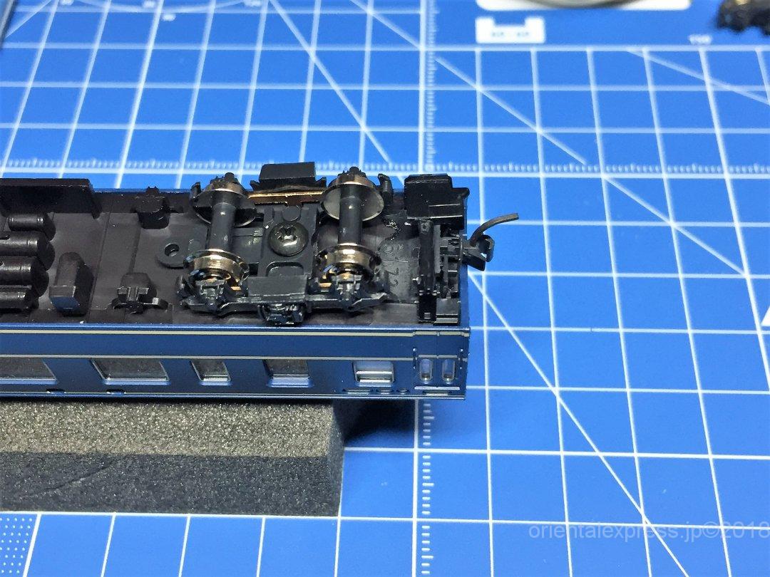 一度ボディーマウント化した車両で、カプラーの高さが合わずに取外し保管して置いたものを再利用しました。