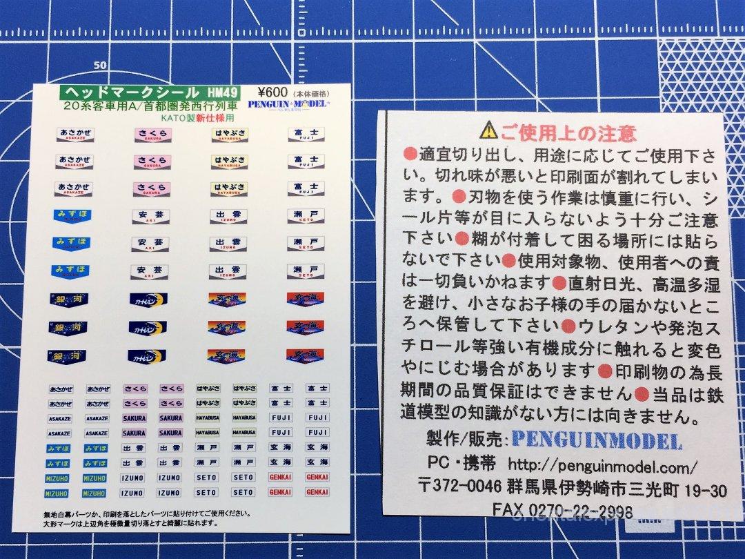 ・ペンギンモデル HM49 20系客車車用A/首都圏発西行列車 KATO製新仕様用 600円