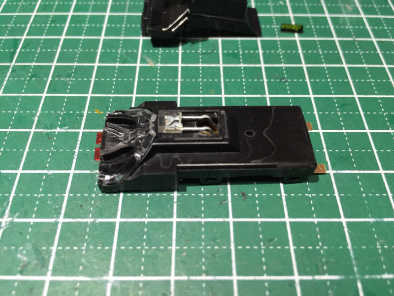 裏側にはダイオードがはんだ付けされていますが除去し、代わりにチップ抵抗560Ωをはんだ付けしました。
