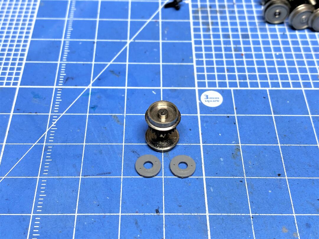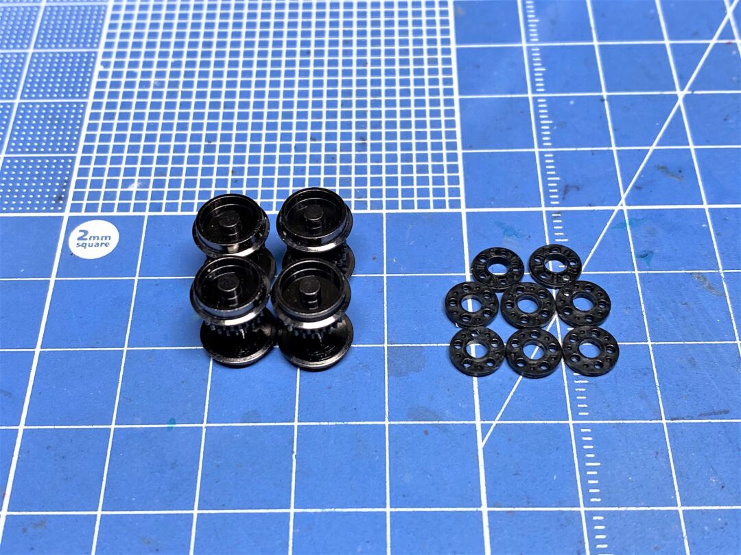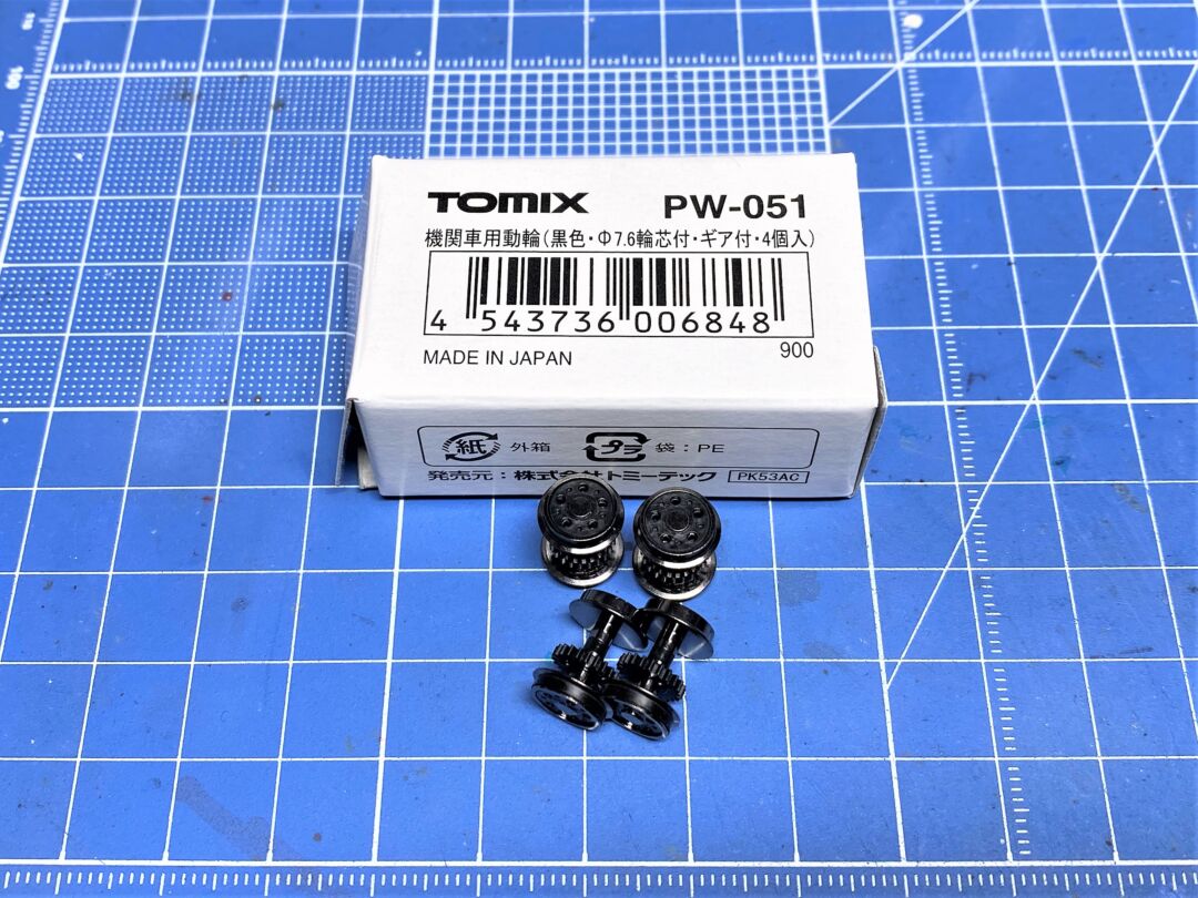・TOMIX PW-051 機関車用動輪(黒色・7.6輪芯付・ギヤ付・4個入)990円