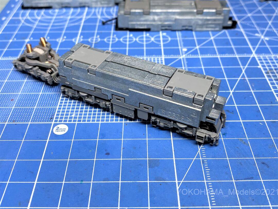 そして2エンド側と合体させてから、レールの上で試走行します。