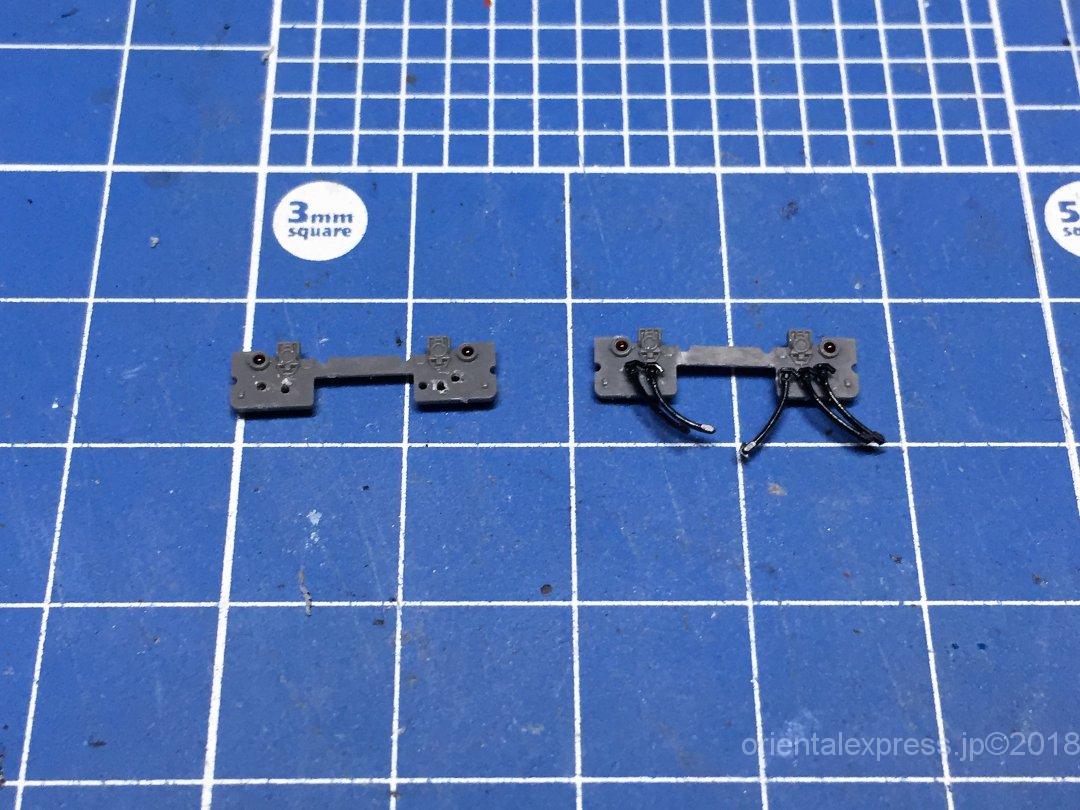 列車無線アンテナもありますね。列車無線アンテナ用の穴は0.6mmで穴を片側だけ開けました