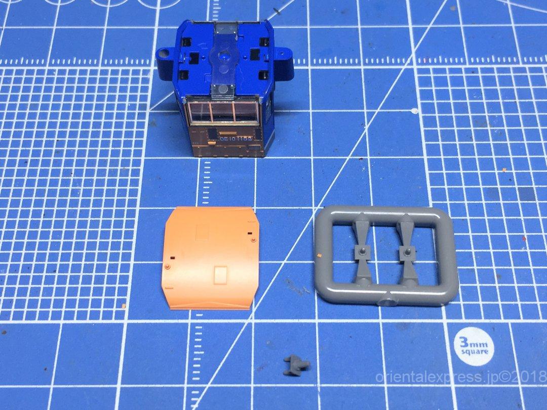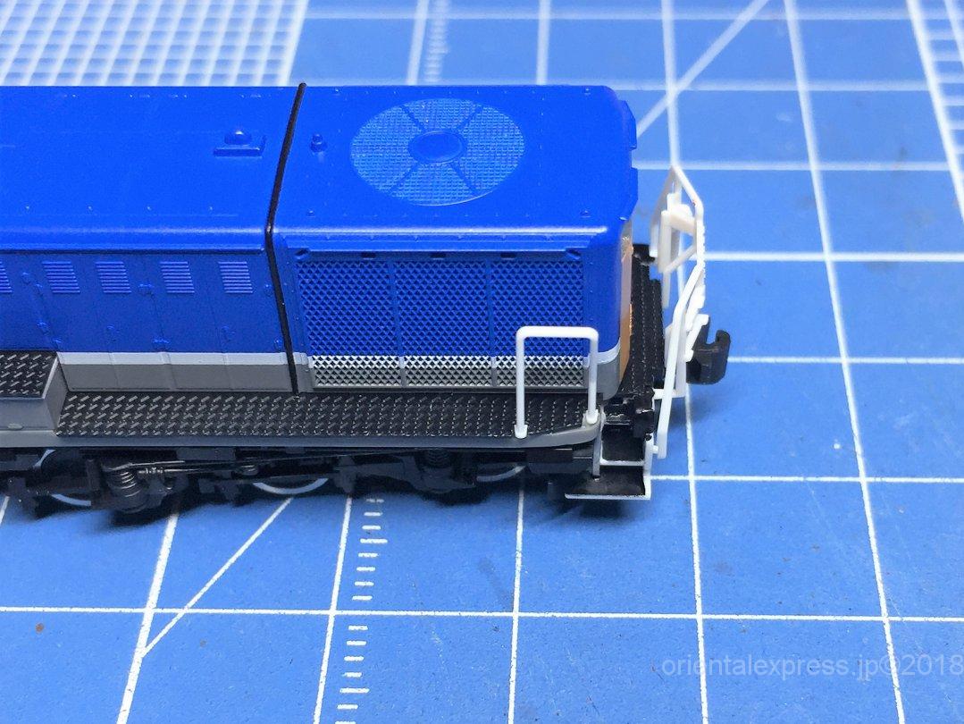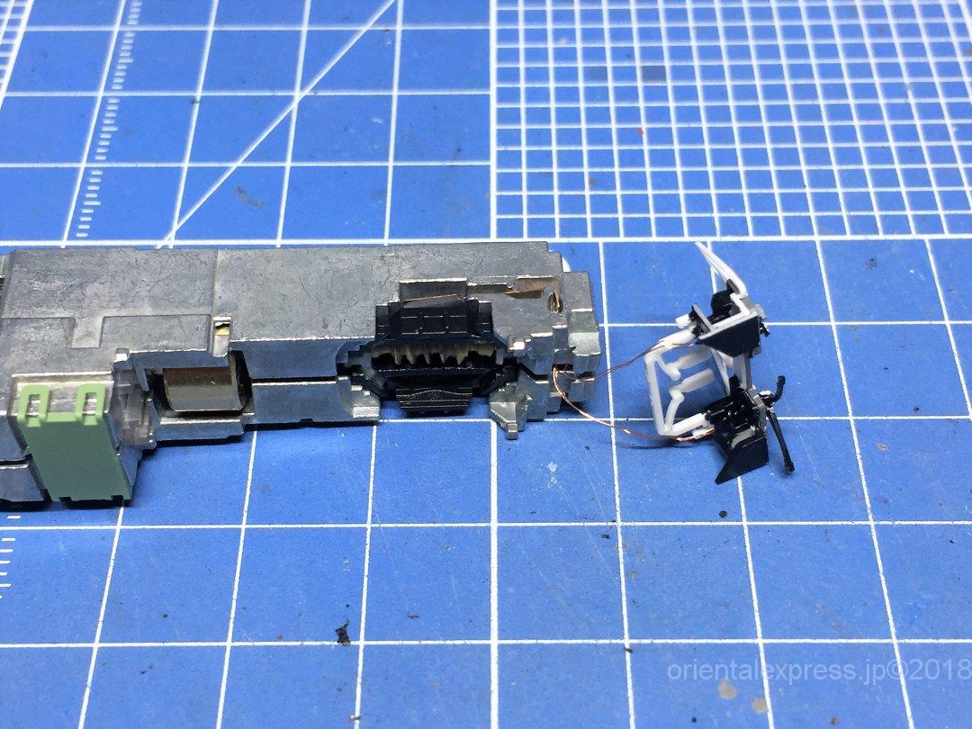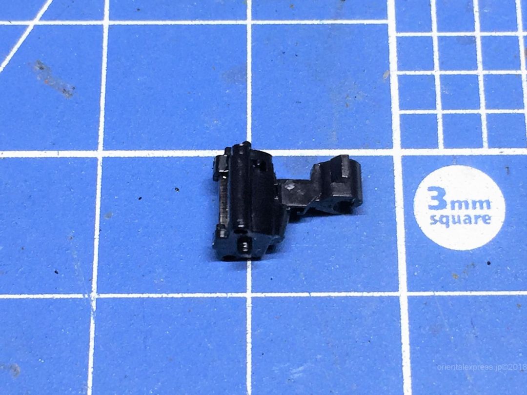 色々考えてみたのですが、いつものようにかもめナックルカプラーを差し込んでハイグレード模型用接着剤で固定しました。下の隙間には例のナックルカプラーのランナーを切り取って詰めています。
