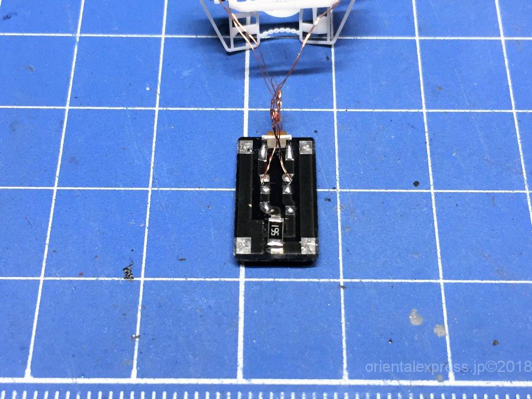 1kオームの抵抗がついていましたので、560オームに交換しつつ白色LEDに交換しました。