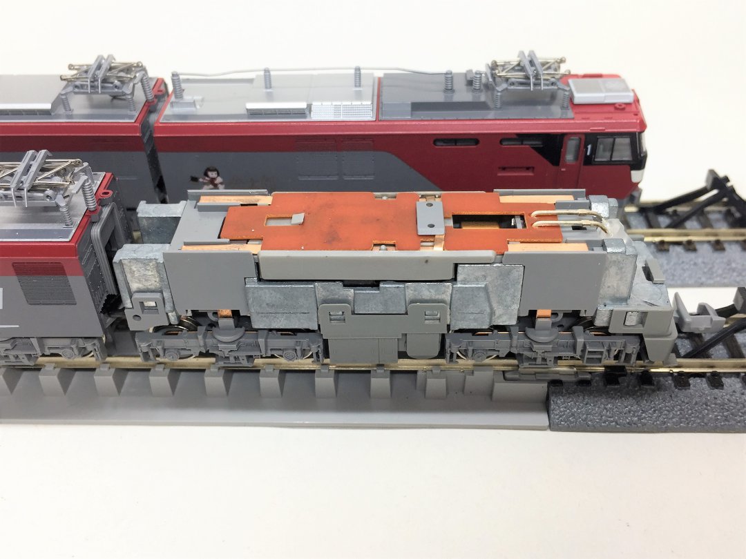 EH500 2次形 入線。KATO 3037動力ユニットは5極モーターフライホイール付きの古いタイプです。