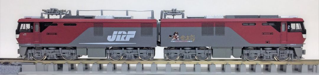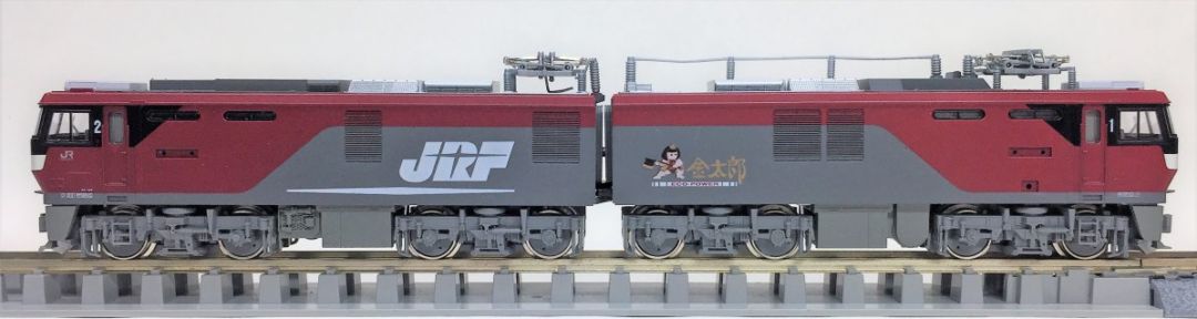 EH500 2次形 入線。KATO 3037ECO POWER金太郎のロゴです。バブルジェット方式ではありませんがキレイに印刷されています。表面がつるつるしていて横濱模型はこちらの印刷方式がお好みです。