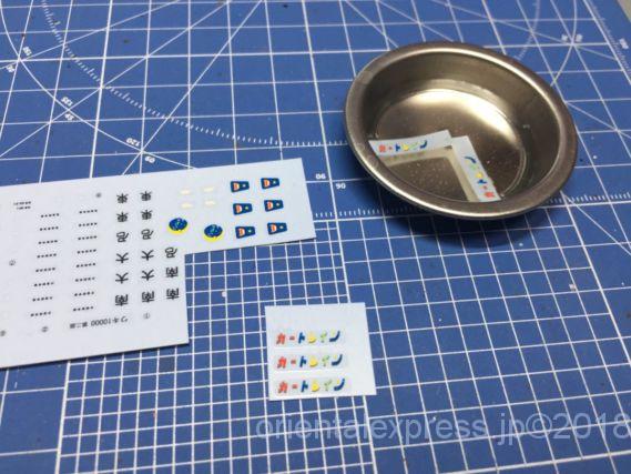 プラバン0.2mmでカートレインのマーク2種類用の板を切り出しています。
