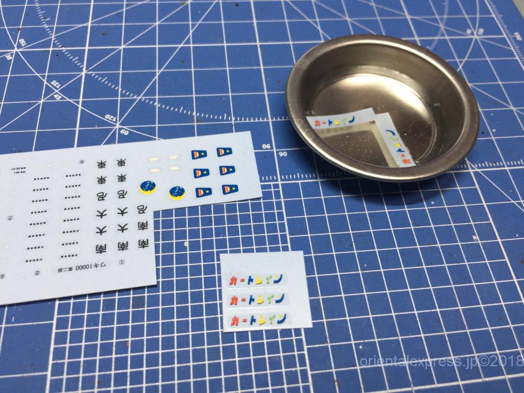 プラバン0.2mmでカートレインのマーク2種類用の板を切り出しています。