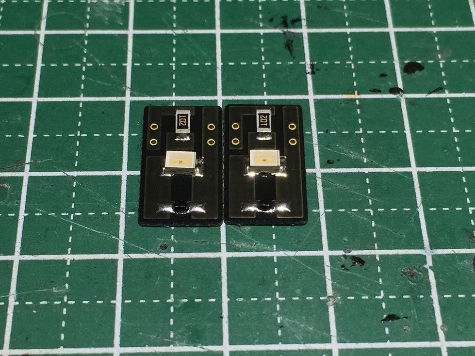 途中の画像がありませんが、高輝度電球色チップLEDを取り付けて560Ωの抵抗を付けました。