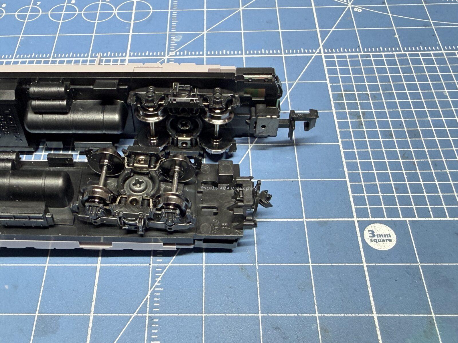 我が家では標準カプラーがKATOナックルカプラーですので、反対側はKATOナックルカプラー用のボディーマウントが取り付けてあります。もちろんリカラー謹製の。