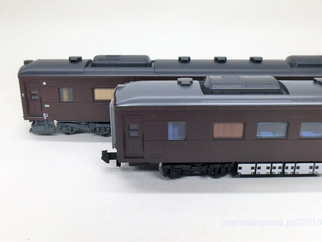下側がTOMIXの方なのですが、印刷ですから間からうっすらと室内灯の光が見えるか見えないかのいい塩梅になってます。