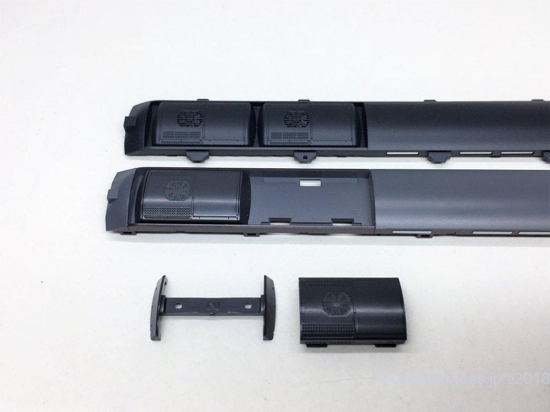 屋根上はグレーで、クーラーパーツはブラック塗装となっています。