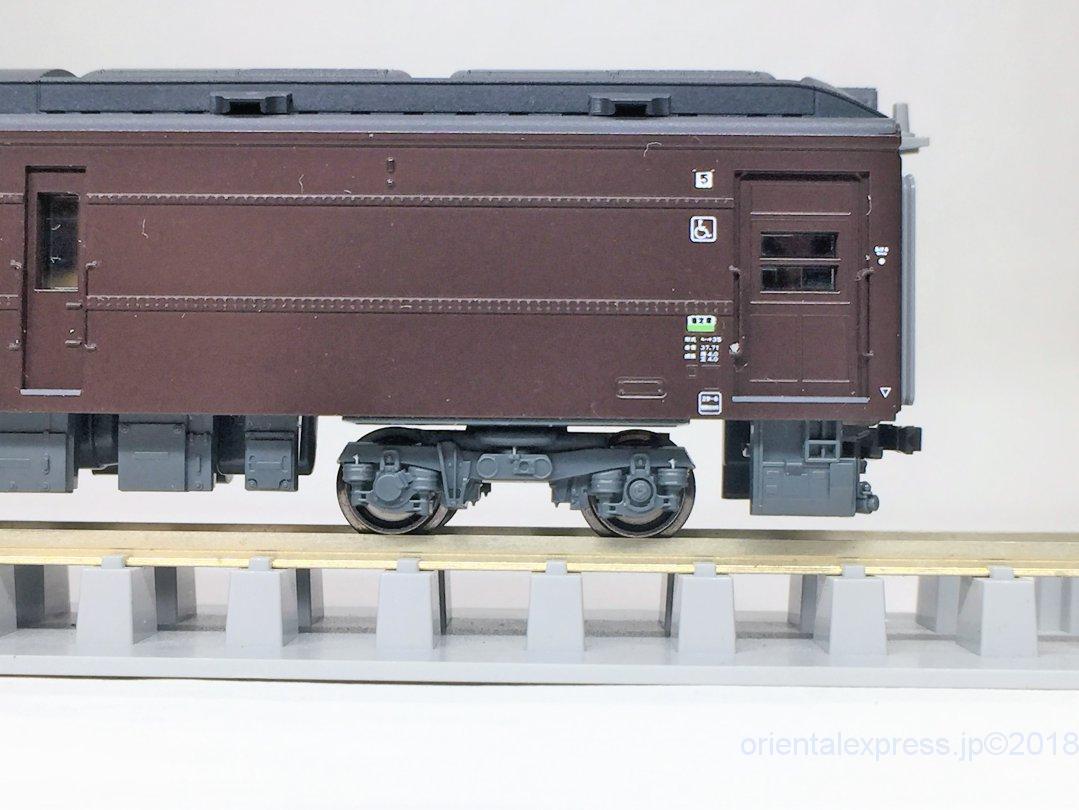 室内灯を取り付けられるのですが、専用品ではなく汎用品を2本装備するという豪華仕様となっています。室内の作り込みや味付けが違いますが、おおむね同じ様な感じではないでしょうか。デッキがフルフラットなのはTOMIXですが、TNカプラー用の穴が開いています