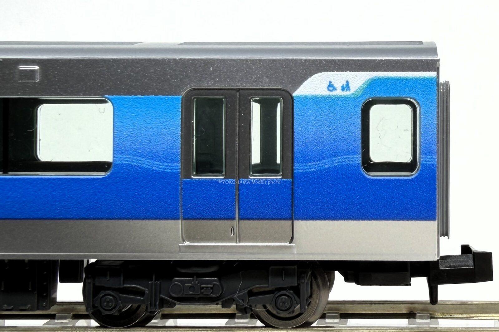 ·71-000形の外観デザインは70-000形の丸みのある面影を継承しながら」海や波のおおらかさを取り入れ、前面上部のひさし形状が横方向への広がりを強調しています