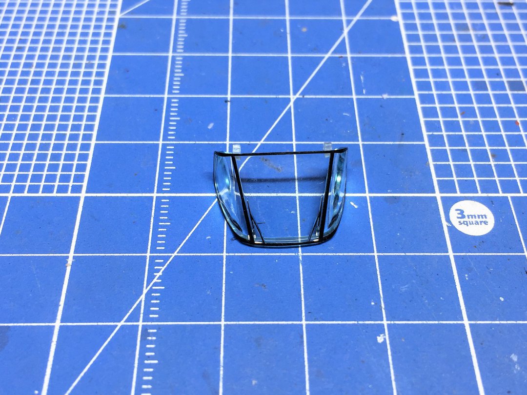 前後あべこべですが、次は窓ガラスです。フチをガンダムマーカーブラックでヌリヌリしておきます。