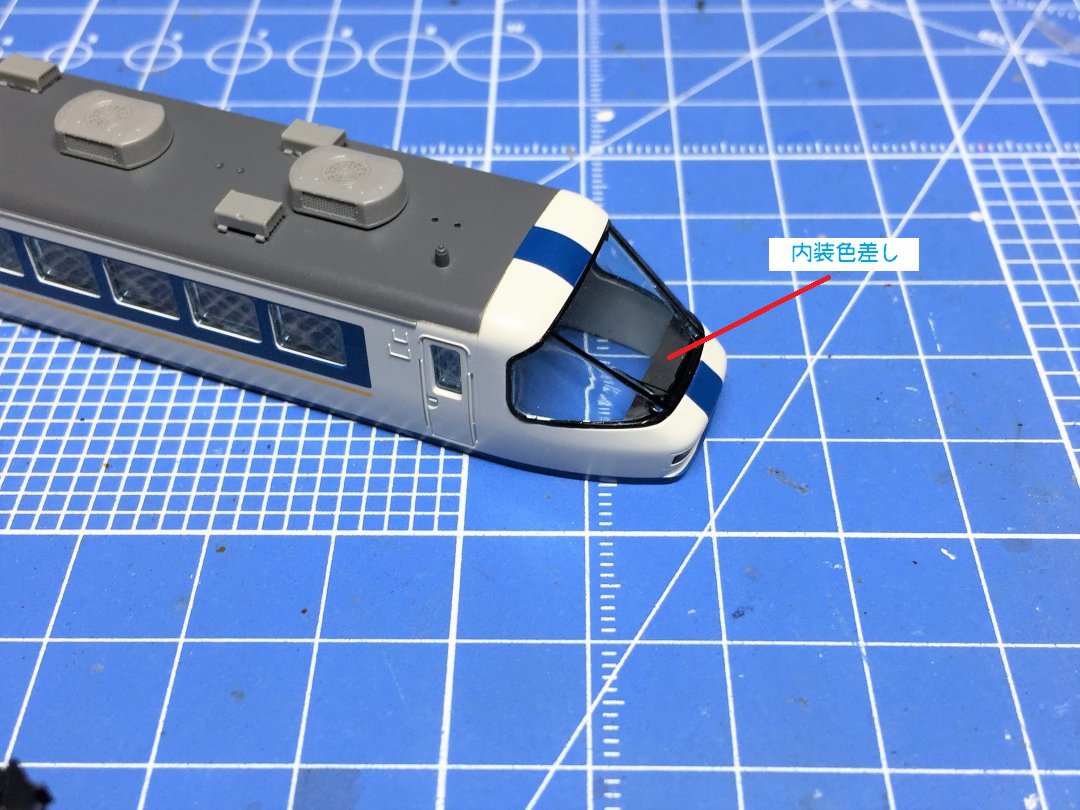 色差ししたガラスパーツを取り付ける前に、室内を運転台に近い色で色差ししました。