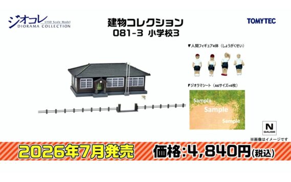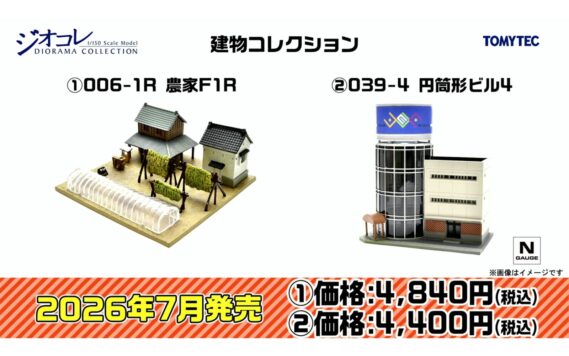 【ジオコレ】新製品再生産発売情報 新製品ポスター公開! https://ngauge.jp/tomytec202607/ 2026年7月発売予定 ・337751 鉄コレポケット第3弾 懐かしの近郊電車編 1,650円(税込) ・337744 鉄コレポケット専用ケースA(近郊・通勤形用) 3,300円(税込) 2026年7月発売予定 ・332657 鉄道コレクション 国鉄キハユニ15形 2両セット 7,480円(税込) ・340942 鉄道コレクション 伊豆急行1000系(1102編成)2両セット 7,040円(税込) ・340980 鉄道コレクション 伊豆急行100系4両セットE 14,300円(税込) ・340904 鉄道コレクション JREV-E801系(男鹿線)2両セット 7,040円(税込) ・340409 鉄道コレクション JR BEC819系DENCHA 2両セット 7,040円(税込) ・341314 ザ・バスコレクション 京都市交通局 いすゞエルガEVデビュー記念  4,180円(税込) ・341178 バスコレで行こう25 横浜市交通局 ぶらり赤レンガBUS 4,180円(税込) ・338505 ザ・バスコレクション 長電バス 三菱ふそう エアロキング 4,840円(税込) ・338345 (HO)ザ・バスコレクション80 <JH007-3>全国バスコレクション80 名古屋市交通局 7,920円(税込) ・338222 建コレ006-1R 農家F1R 4,840円(税込) ・334989 建コレ039-4 円筒形ビル4 4,400円(税込) ・334897 建コレ081-3 小学校3 4,840円(税込) ・292364 情景コレクション 情景小物070-2 農機小屋と農機A2 3,080円(税込) ・322375 情景コレクション 情景小物128 ソーラーパネル 2,860円(税込) ・330271 情景コレクション 情景小物144 遠景素材 神社・鳥居 3,960円(税込) 鉄道模型