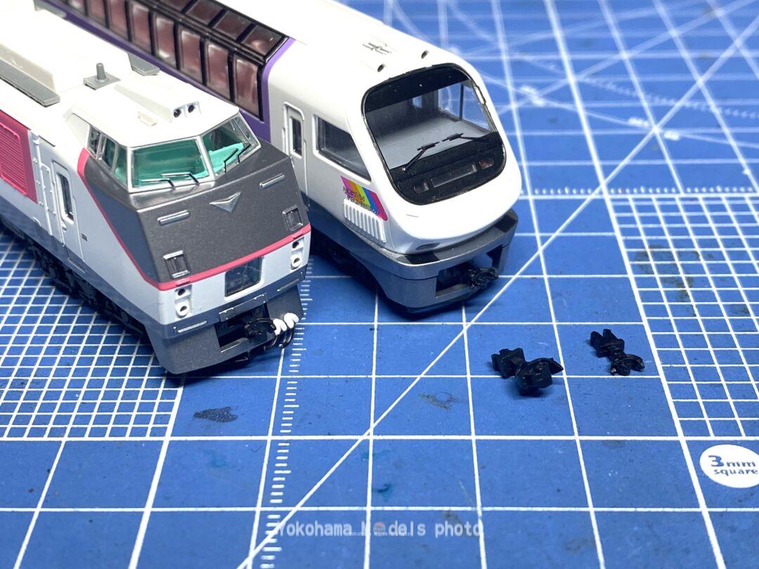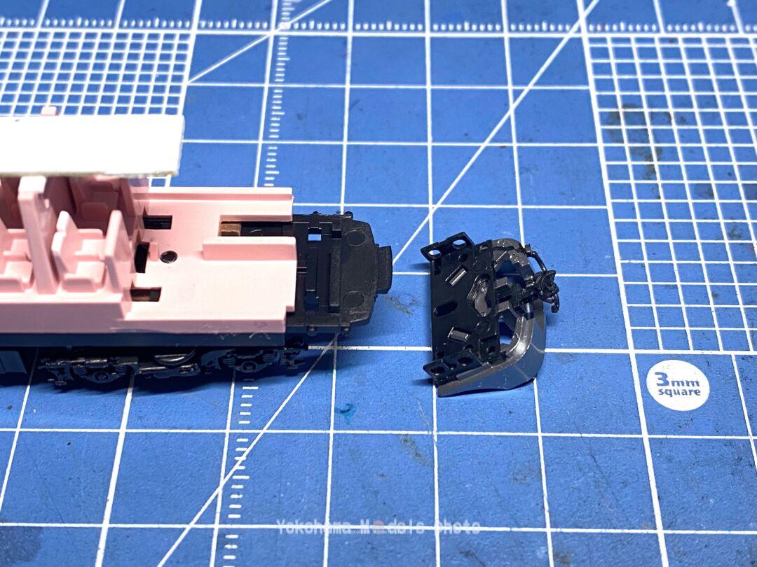 スカート部分も取り外します。今回はこの前面のカプラーを連結できるようにしてみます。