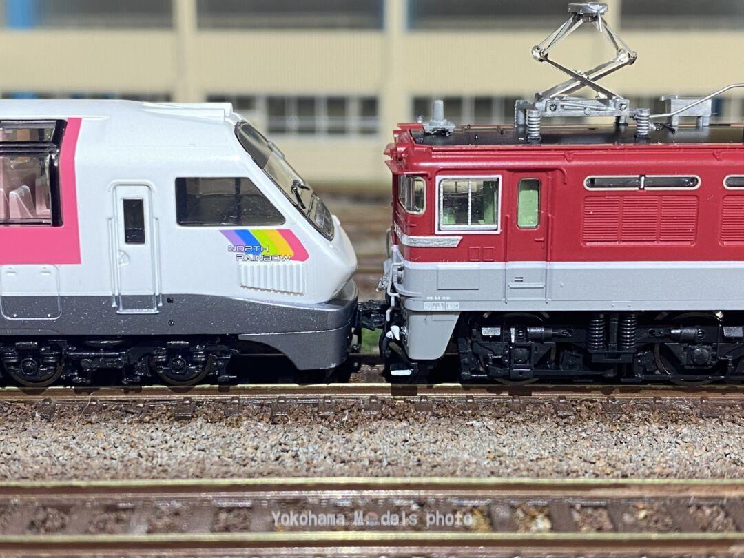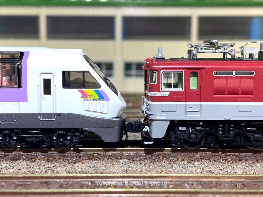キハ183 5201をED76 551号機と連結させてみました。TNカプラーではなくKATOのナックルカプラーが装備されていますので、例のTNカプラー連結加工はしています。