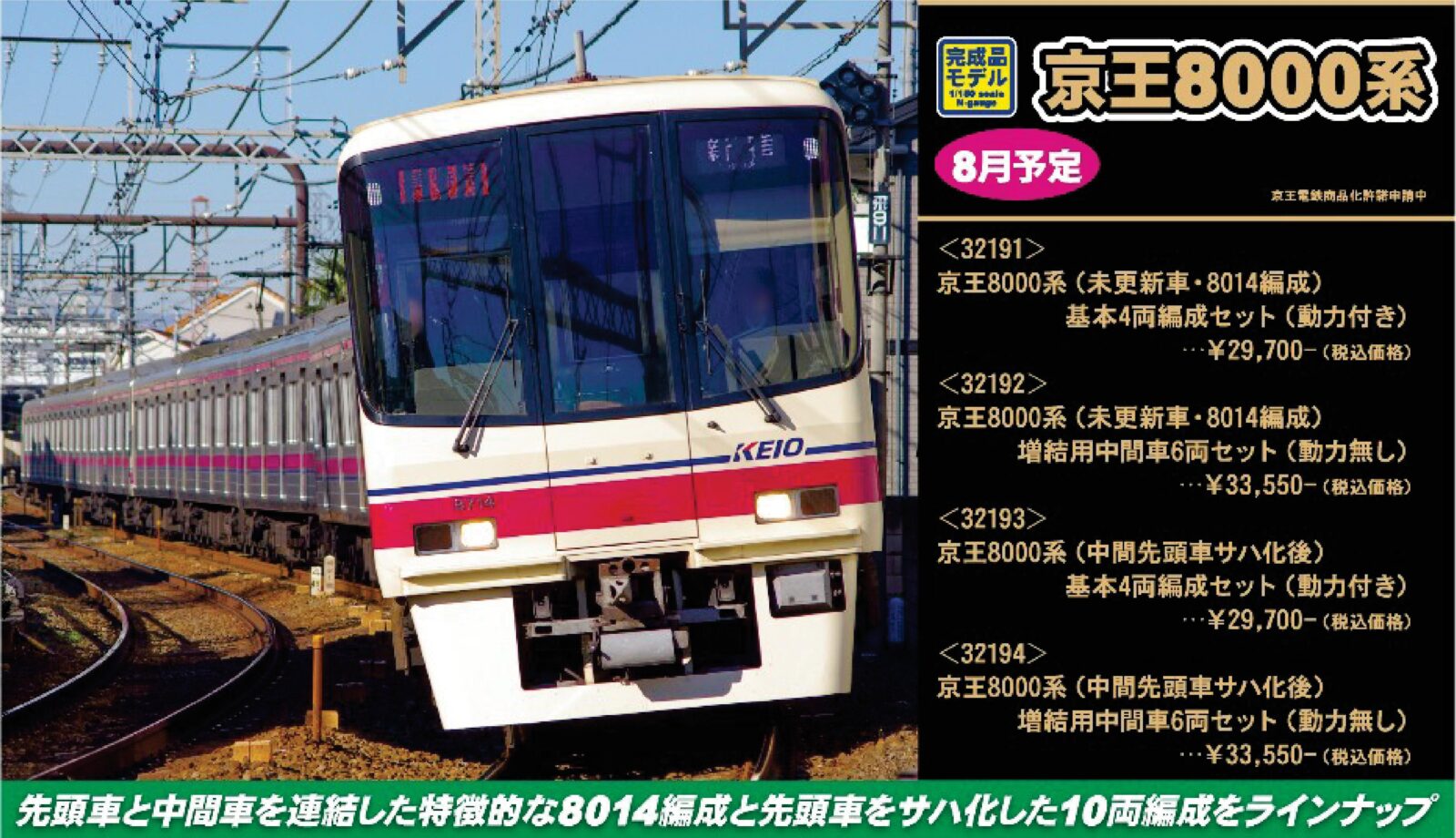 | 新 | 32188 | 小田急8000形(8066編成)+クヤ31形 5両編成セット (動力付き) | 36,300円(税込) |