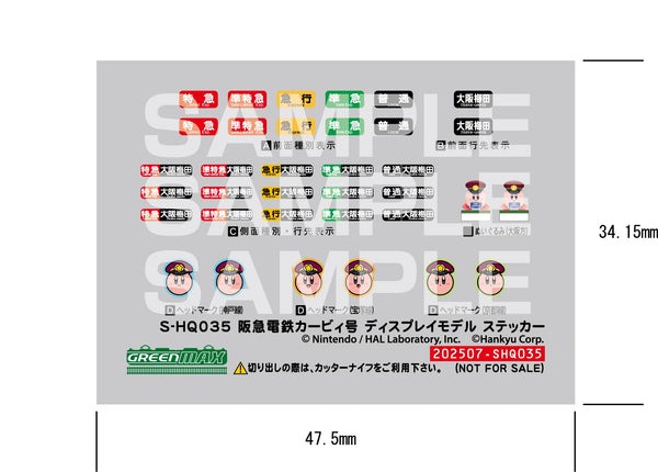 HANKYU DENSHA SHOP(阪急電鉄)はGREENMAX製完成品Nゲージ車両、ディスプレイモデル カービィ号3線セット(神戸線・宝塚線・京都線)大阪方先頭1両 阪急電車限定を販売。