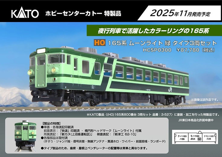 新 | HCSP0300 | (HO)165系800番台ムーンライト 緑 タイプ 3両セット | 87,780円 |