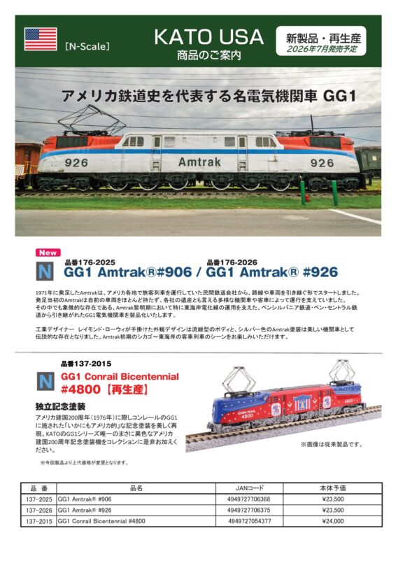 | 再 | 137-2026 | GG1 Amtrak® #926 | 25,850円 |