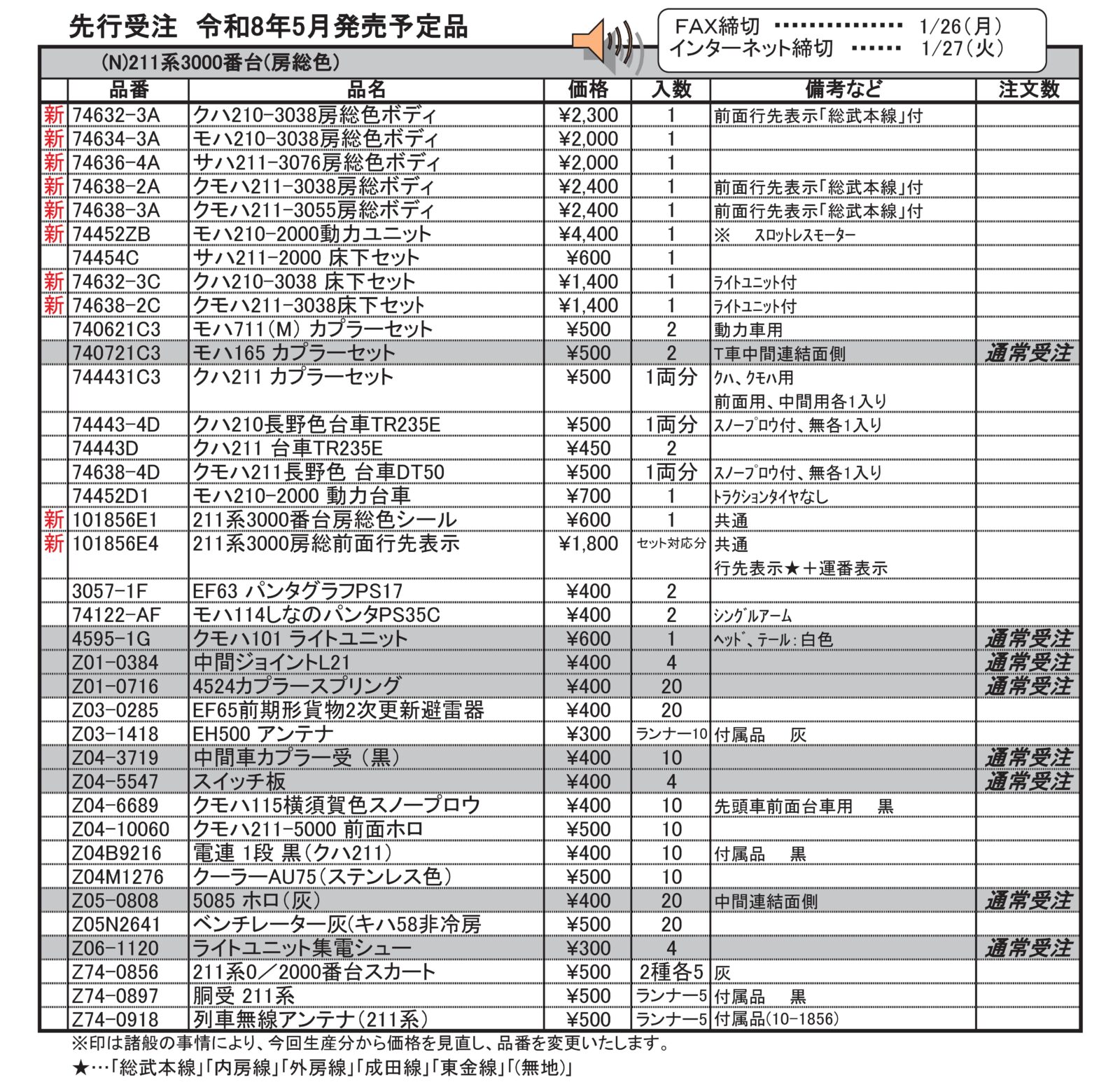 | 新 | 28-298 | クハ103 LED化ライトユニットセット 2両分入 | 2,200円 |