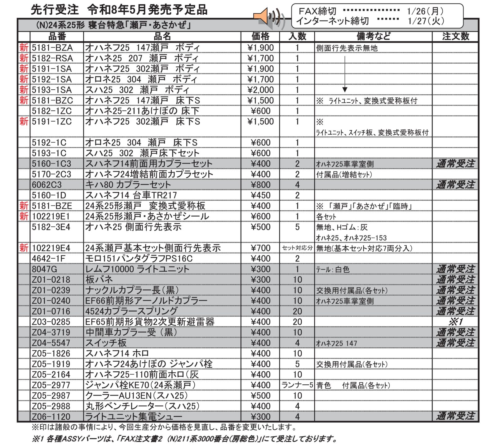 | 新 | 28-292 | オハ35/オハフ33 戦後形 グレードアップパーツ | 3,080円 |