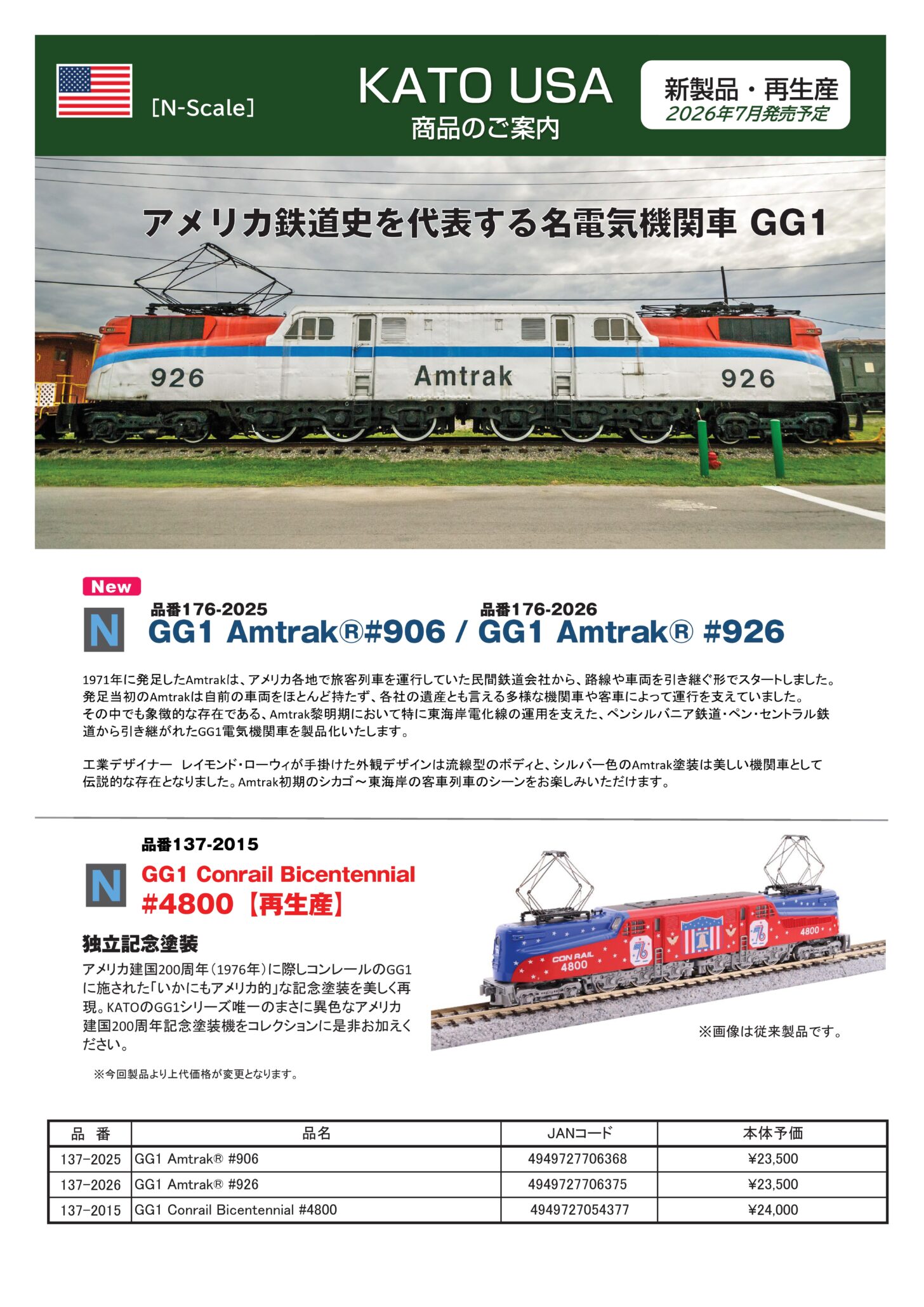| 再 | 137-2026 | GG1 Amtrak® #926 | 25,850円 |