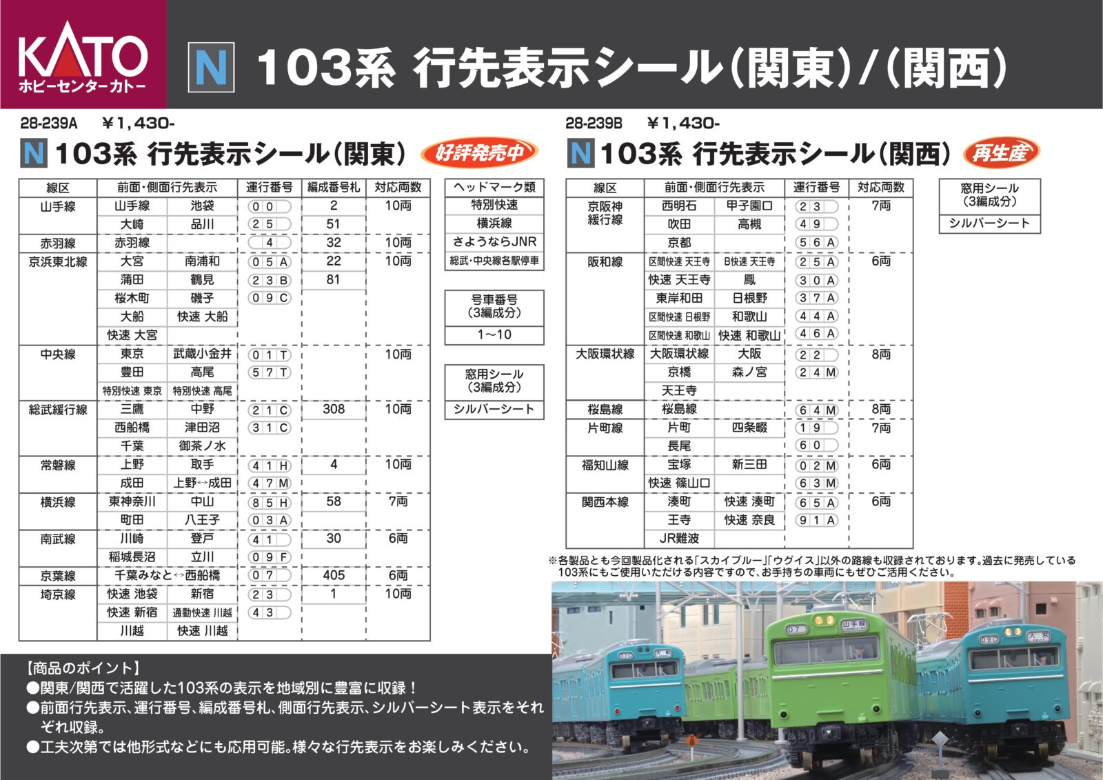 | 再 | 28-239B | 103系 行先表示シール(関西) | 1,430円 |