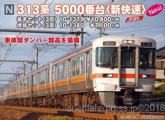 –品番 品名 価格(税別) [新] 10-1379 313系 5000番台<新快速>基本セット(3両) 10800円 [新] 10-1380 313系 5000番台<新快速>増結セット(3両) 7100円 [新] 10-1381 313系 5300番台<新快速>2両増結セット 6000円 インフォメーション