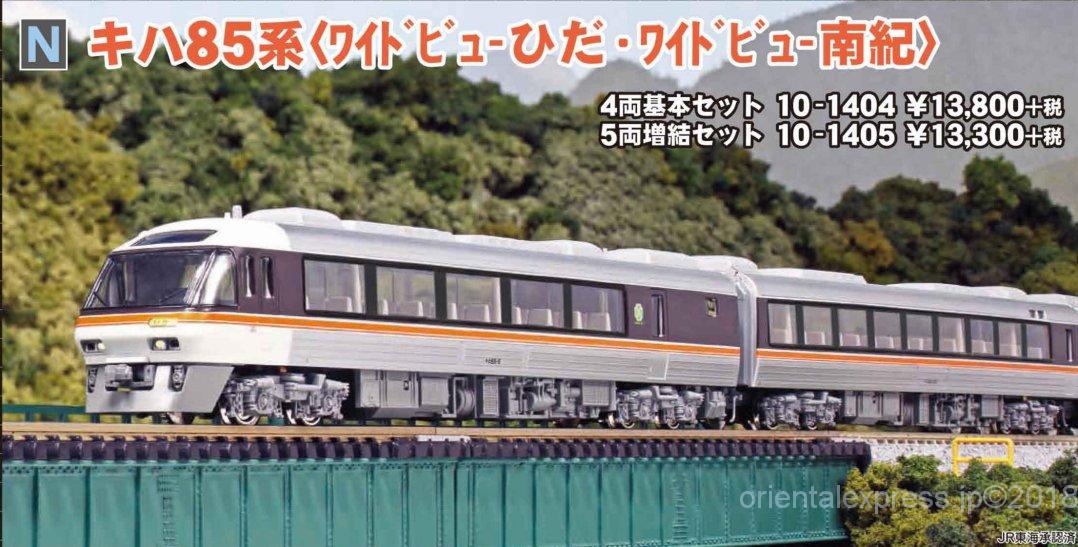 品番 品名 価格(税別) 再 10-1404 キハ85系 ワイドビューひだ・ワイドビュー南紀 4両基本セット 13800円 再 10-1405 キハ85系 ワイドビューひだ・ワイドビュー南紀 5両増結セット 13300円 インフォメーション