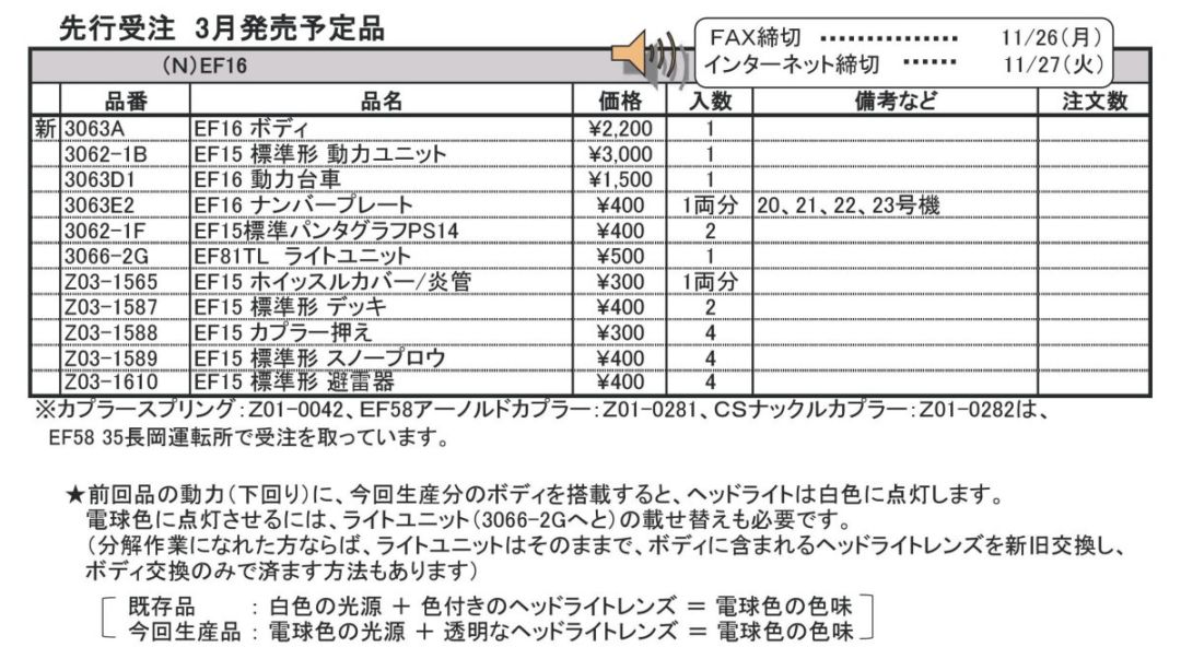 | [再] | 3063A | EF16 ボディ | 2200円 | 1 | |