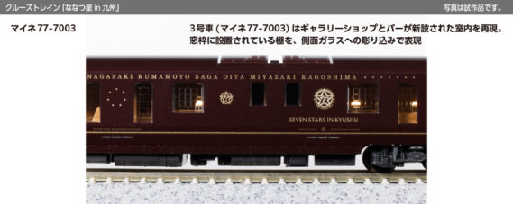 ・3号車(マイネ77-7003)はギャラリーショップとバーが新設された室内を再現