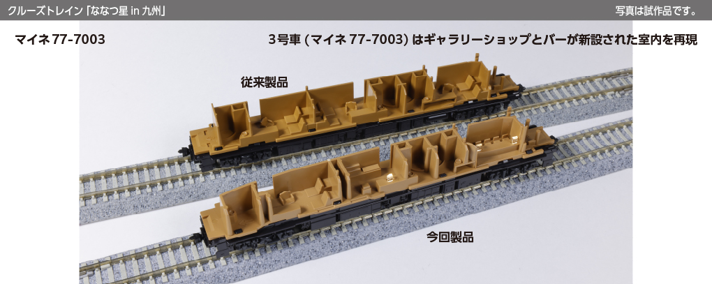 ・3号車(マイネ77-7003)はギャラリーショップとバーが新設された室内を再現