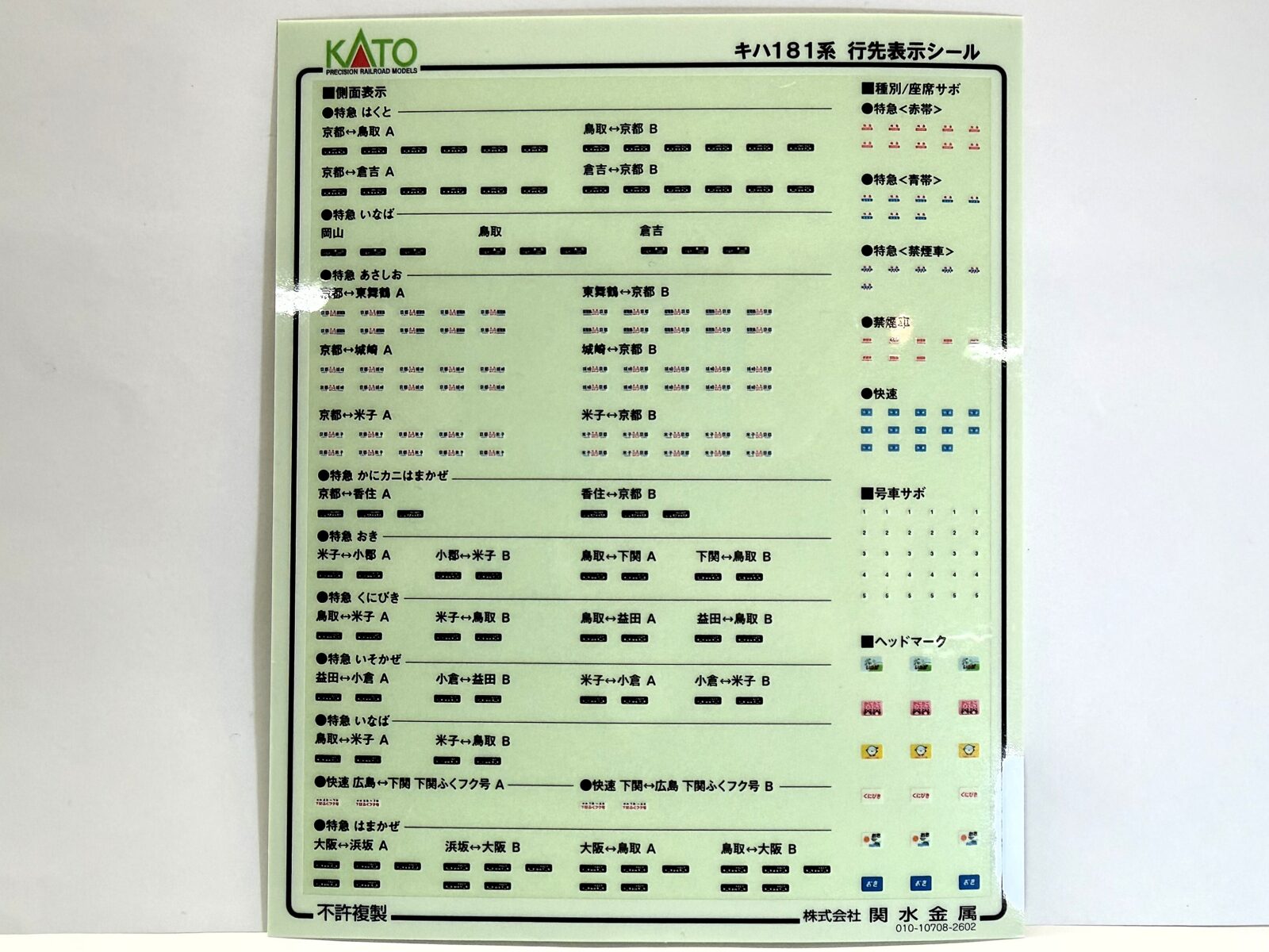 また試作品情報が各販売店に配布されました。今回は南海電鉄6000系(現行塗色) 、大井川鐵道6000系タイプ、キハ181系(はくと)、289系(こうのとり・きのさき)、165系(345M 大垣夜行)、(HO)H5系北海道新幹線はやぶさなど