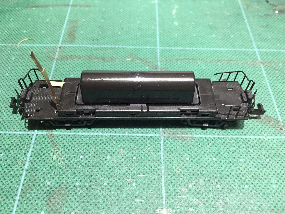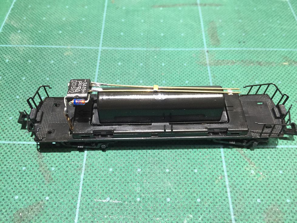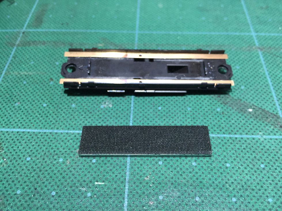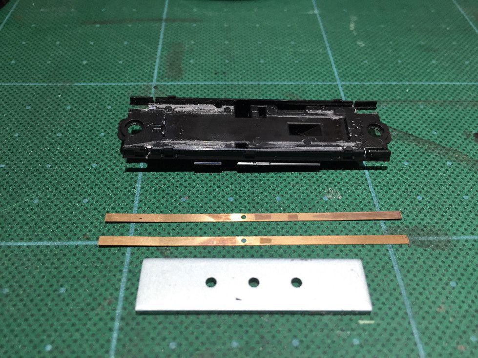 KATO純正の集電版を2本床下より大きく切り出します。