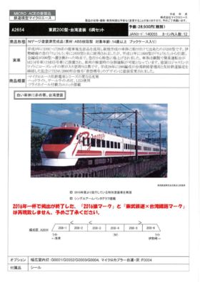 | [新]M | A2654 | 東武200型・台湾塗装 6両セット | 28,900円+税 |