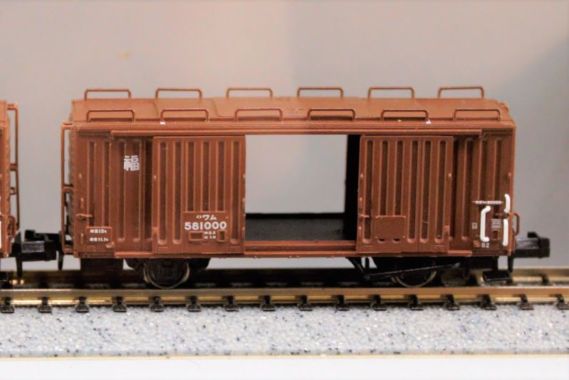 大型の板ガラスを輸送するために14両が(581000~581013)改造され屋根上にスライド式の扉が増設されました。JR貨物広島工場所属のワム80000は部品輸送用に配給列車に使用されています。モスグリーンに塗装されています。商品概要