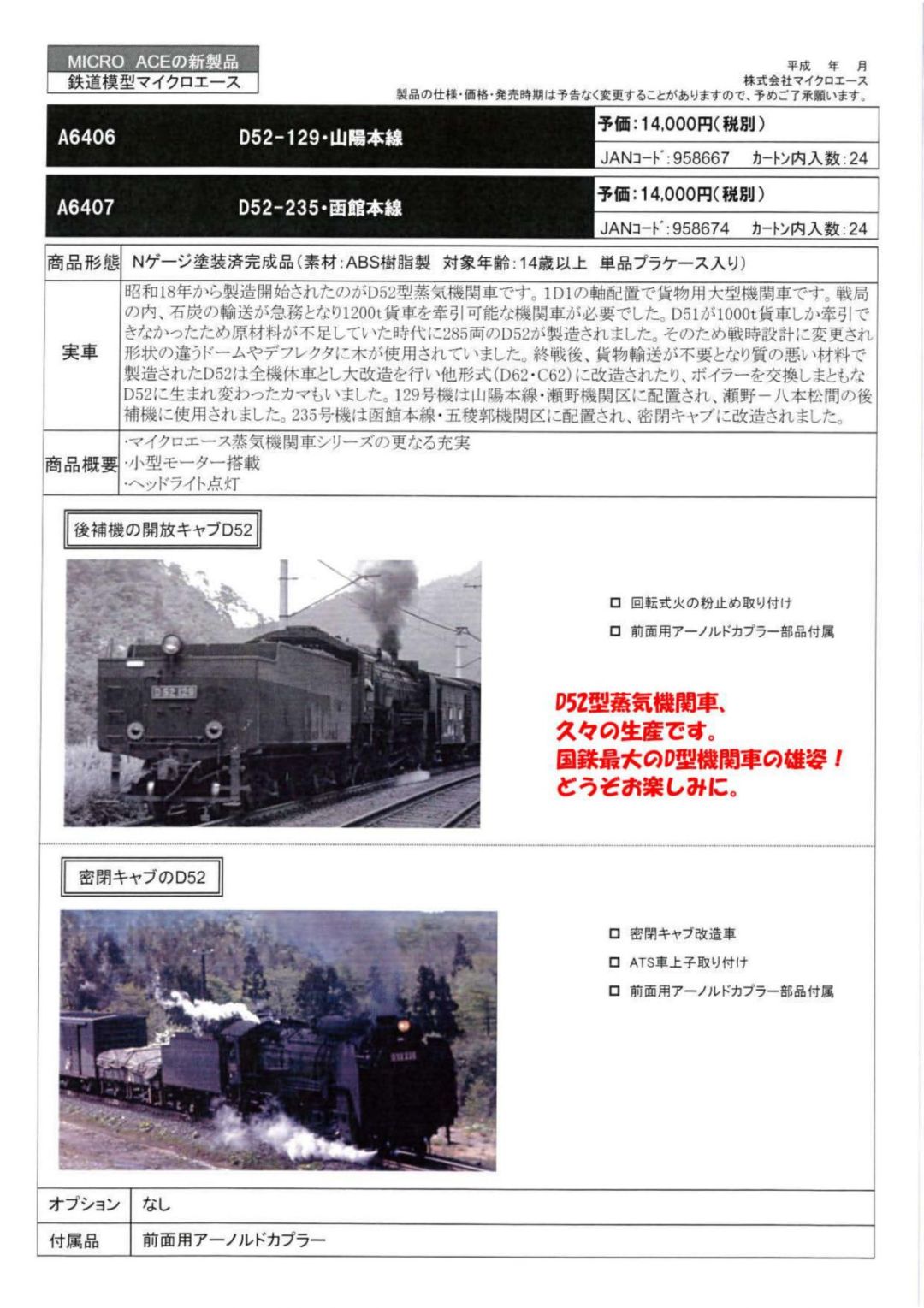 | [新]M | A6407 | D52-235・函館本線 | 14,000円+税 |