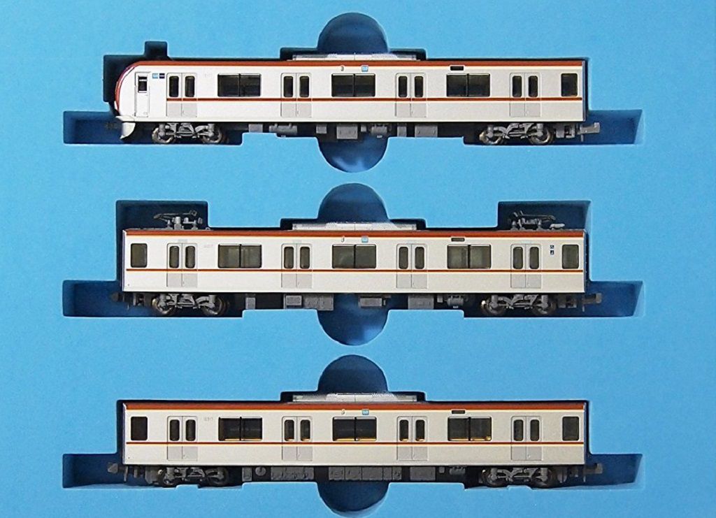 ・フライホイール付動力ユニット搭載アルミボディに茶色・金色・白のライン10000系2次車の現行の姿を再現します。