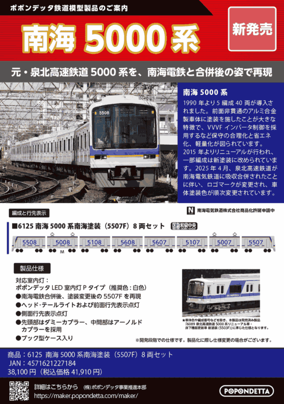 | 新 | 6126p | ポポンデッタ限定 南海5000系泉北塗装(5501F)8両セット | 41,910円(税込) |